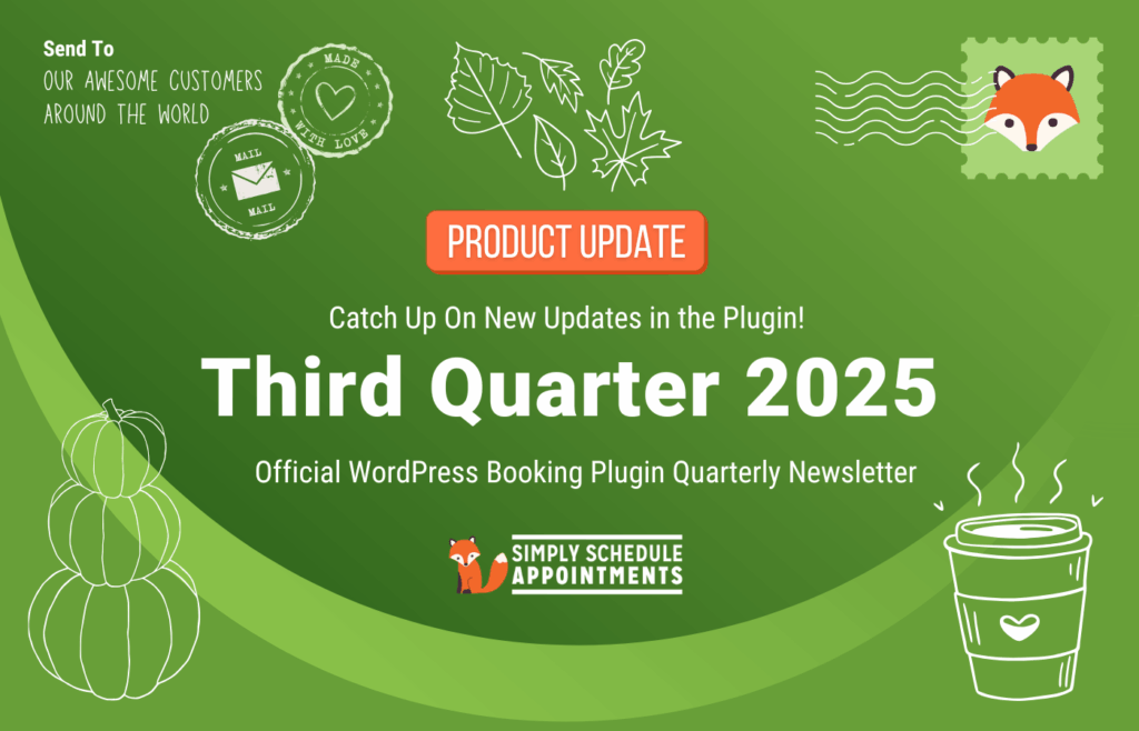 Welcome to the Quarterly Newsletter! We’re wrapping up our third quarter of 2025 with a fresh batch of updates for Simply Schedule Appointments. Over the past few months, we’ve focused on fine-tuning performance, boosting accessibility, and polishing integrations to make your booking experience smoother than ever. This quarter was all about refinement and reliability. Simply… Read more Third Quarter 2025 Recap – Foxy Quarterly Newsletter
