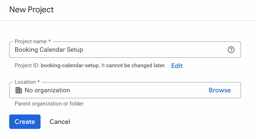 Google Suite users can proceed with using their organization name as the Location. Can’t click on any organizations? Go to our Can’t Create a Project section.